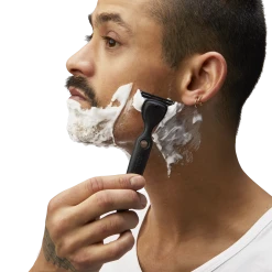 Haut anfeuchten, Rasiergel anwenden, rasieren, abspülen, abtrocknen, Aftershave anwenden. Voilà!