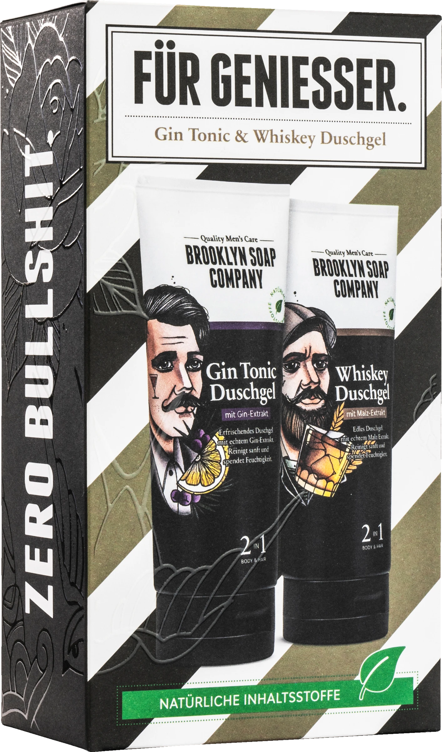Dieses Set besteht aus: Brooklyn Soap Company Gin Tonic Duschgel 200 ml und Brooklyn Soap Company Whiskey Duschgel 200 ml.