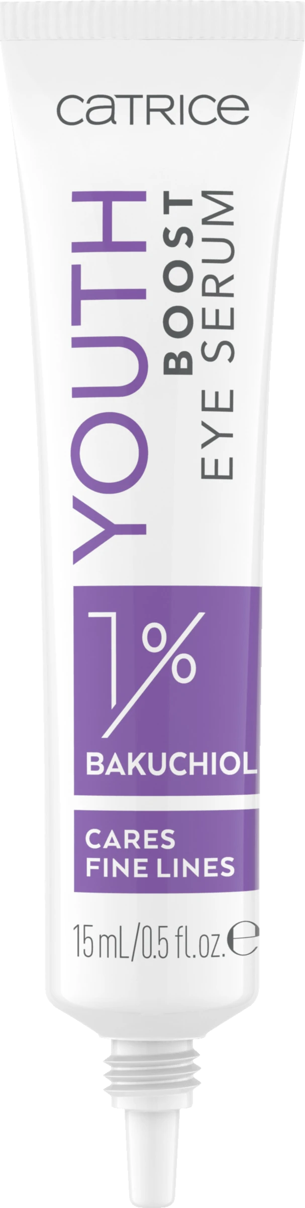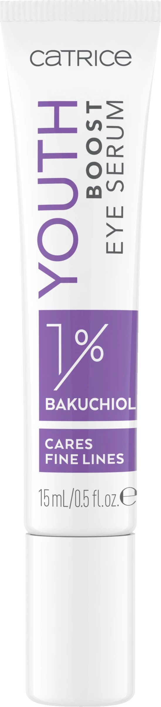 Das Youth Boost Eye Serum enthält 1% Bakuchiol, eine Retinol-Alternative, und ist die ideale Pflege für feine Linien unter den Augen. Außerdem ist es mit feuchtigkeitsspendender Hyaluronsäure und pflegendem Vitamin E angereichert. Die leichte Textur zieht schnell ein und sorgt für eine erfrischte, jung aussehende Haut.