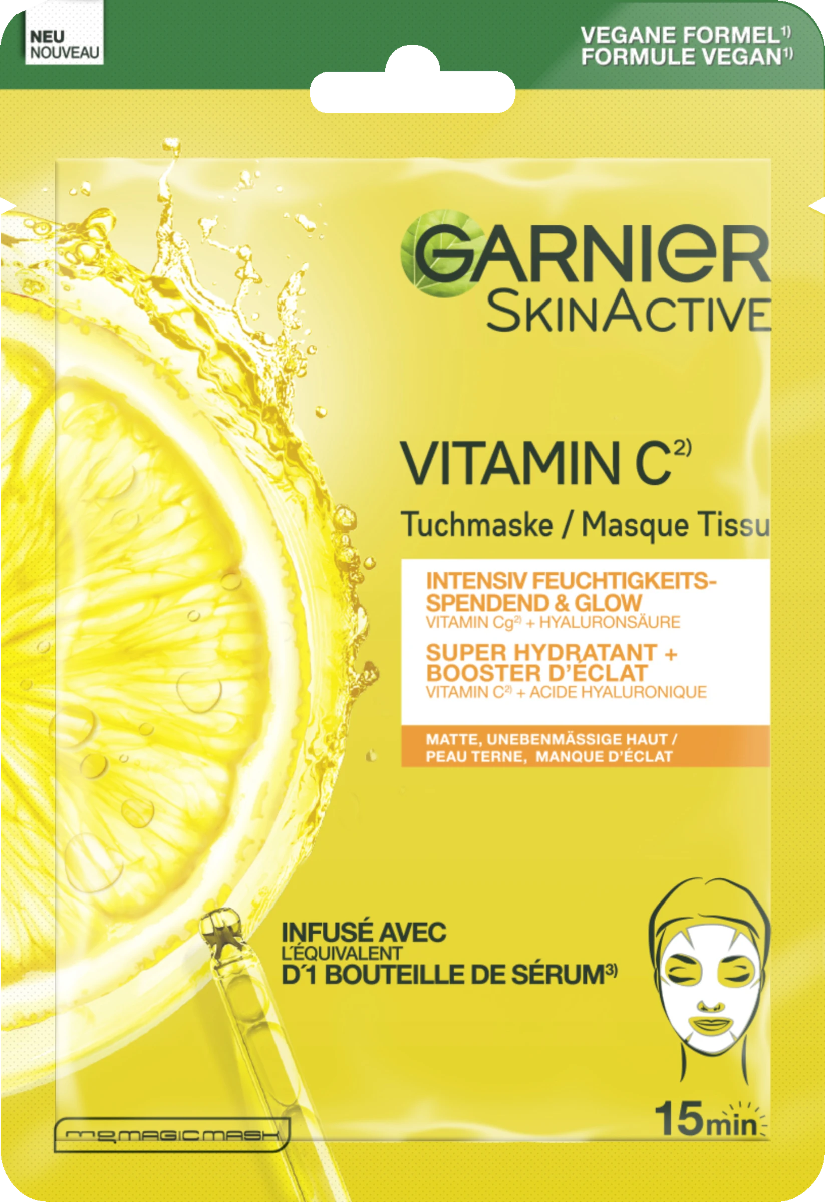 Der Frischekick für strahlende Haut! Die SkinActive Vitamin C Tuchmaske mit Vitamin C und Hyaluronsäure revitalisiert die Haut – für einen ebenmäßigeren Teint und ein sichtbar hydratisiertes Hautbild.