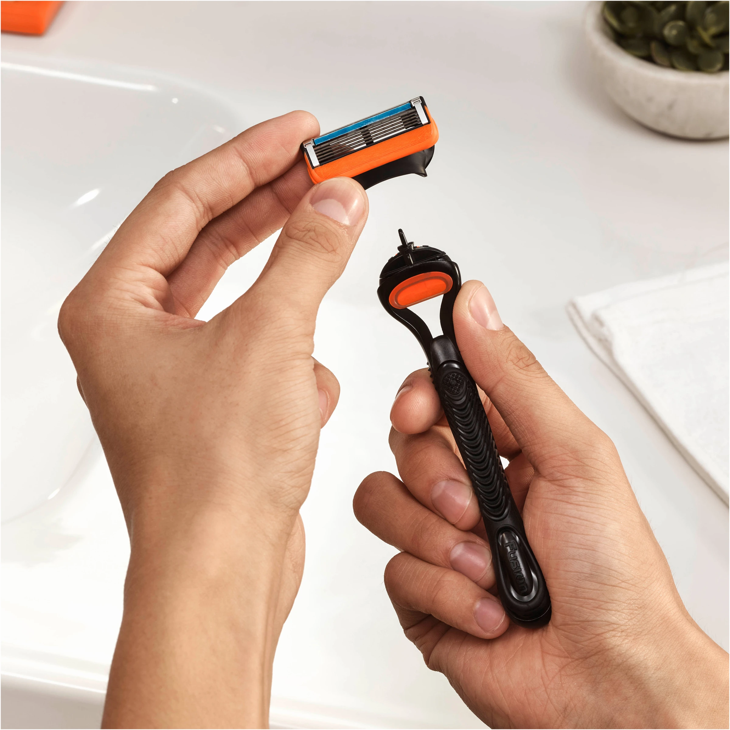 Die Gillette Fusion5 Rasierklingen für Männer verfügen über 5 Anti-Irritations-Klingen für eine gründliche und lang anhaltende Rasur. Die Klingen liegen eng aneinander und sorgen für unglaublichen Komfort. An der Rückseite sitzt ein Präzisionstrimmer für schwer zu erreichende Stellen und zum Konturieren der Gesichtshaare. Gillette Fusion5 Ersatzklingen passen auf alle Gillette Fusion5, ProGlide, ProShield oder SkinGuard Griffe.