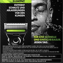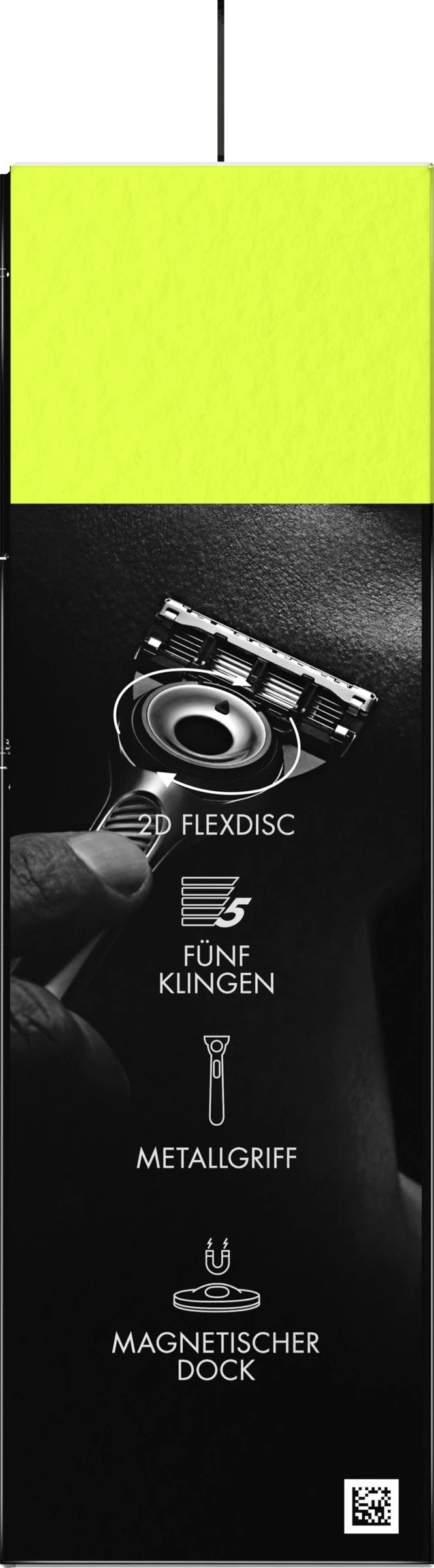 Das Reinigungs-Element entfernt Schmutz und Ablagerungen, bevor die Klingen über die Haut fahren. Durch die 2D-FlexDisc-Technologie passt sich der Rasierer an dein Gesicht an, um Komfort und Kontakt bei jedem Zug zu gewährleisten.