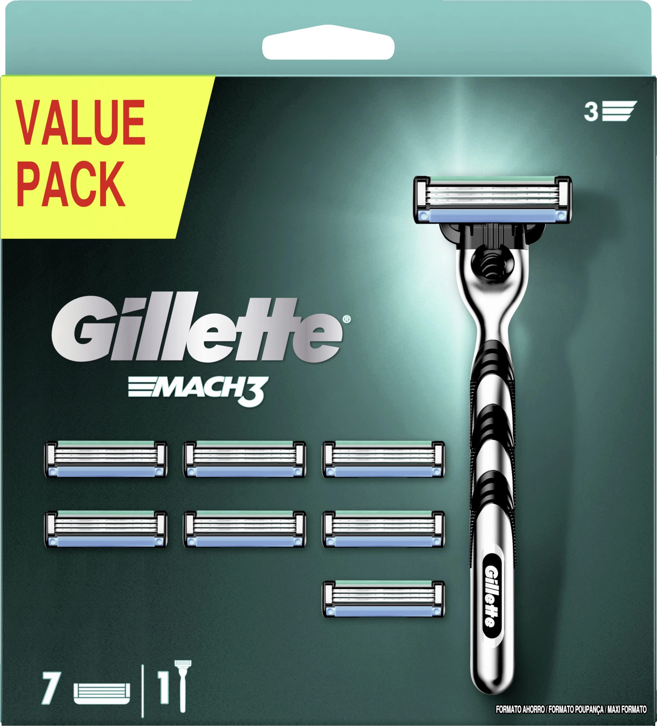 Der Gillette Mach3 Rasierer für Männer wurde für eine gründliche, klassische Rasur gefertigt. Mit drei Klingen, stärker als Stahl, die länger scharf bleiben (vs. Sensor3). Die Nummer 1 weltweit unter den 3-Klingen-Rasierern (Berechnung von Procter & Gamble auf Basis von Nielsen Handelsdaten für Herren 3-Klingensysteme von September 2018 bis August 2019).