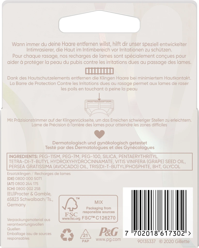 Das patentierte Hautschutzelement und Klingen im optimalen Abstand ermöglichen einen minimierten Klingenkontakt bei empfindlicher Haut. Die Klingen sind außerdem mit einem Präzisionstrimmer auf der Rückseite ausgestattet, um schwierige Stellen zu erreichen.