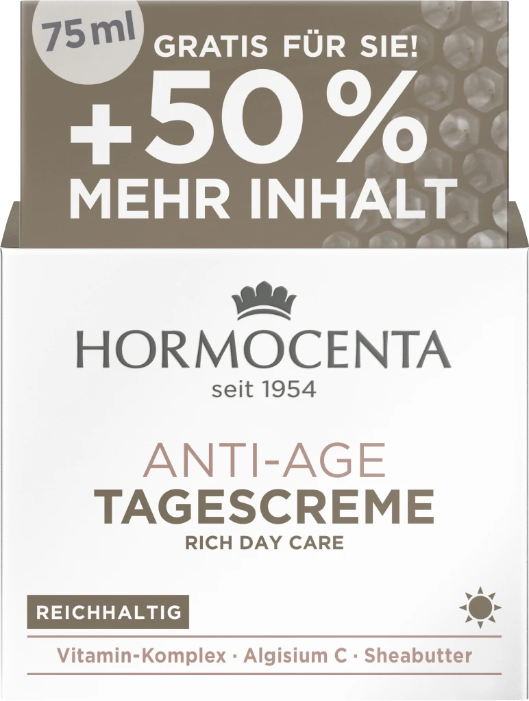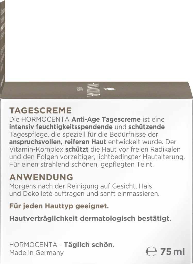 HORMOCENTA Tagescreme ist eine intensiv feuchtigkeitspendende und schützende Tagespflege, die speziell für die Bedürfnisse der anspruchsvollen, reiferen Haut entwickelt wurde. Die gehaltvolle Formulierung glättet die Haut spürbar und schützt sie effektiv vor den Folgen vorzeitiger, lichtbedingter Hautalterung.