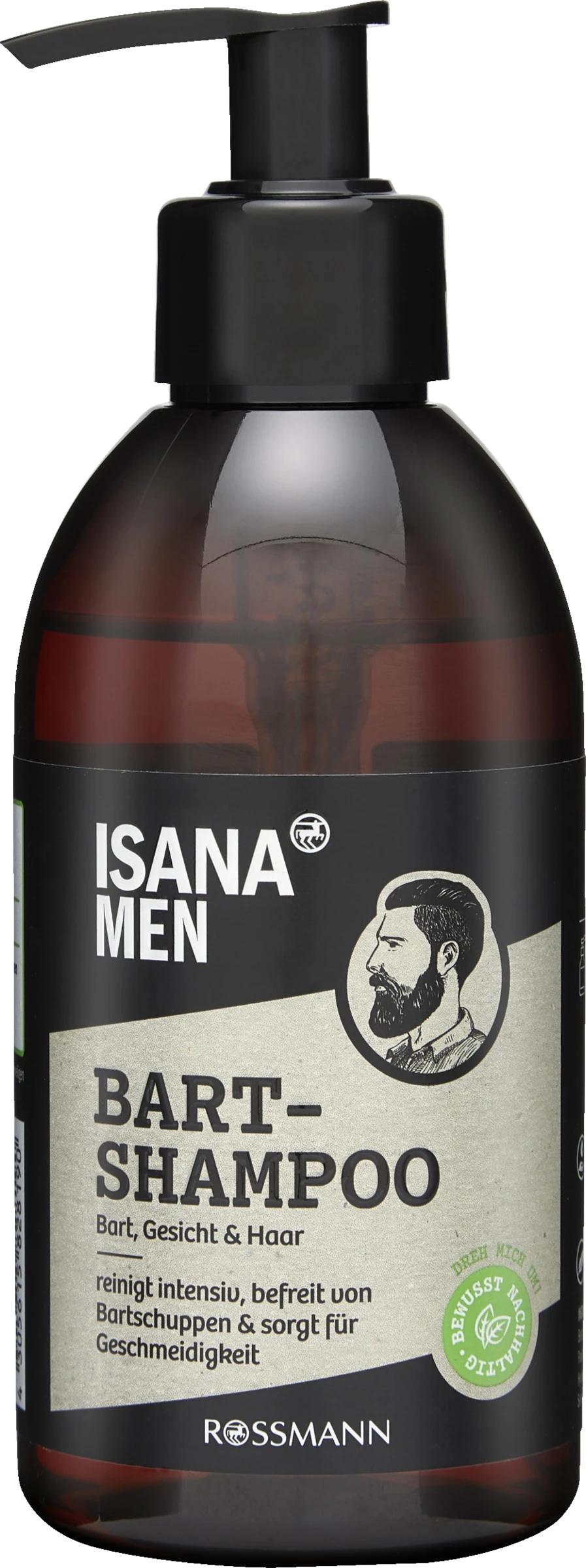 Isana Men Bart-Shampoo mit Guarana-Extrakt & Zink reinigt Bart und Gesicht in einem Schritt.