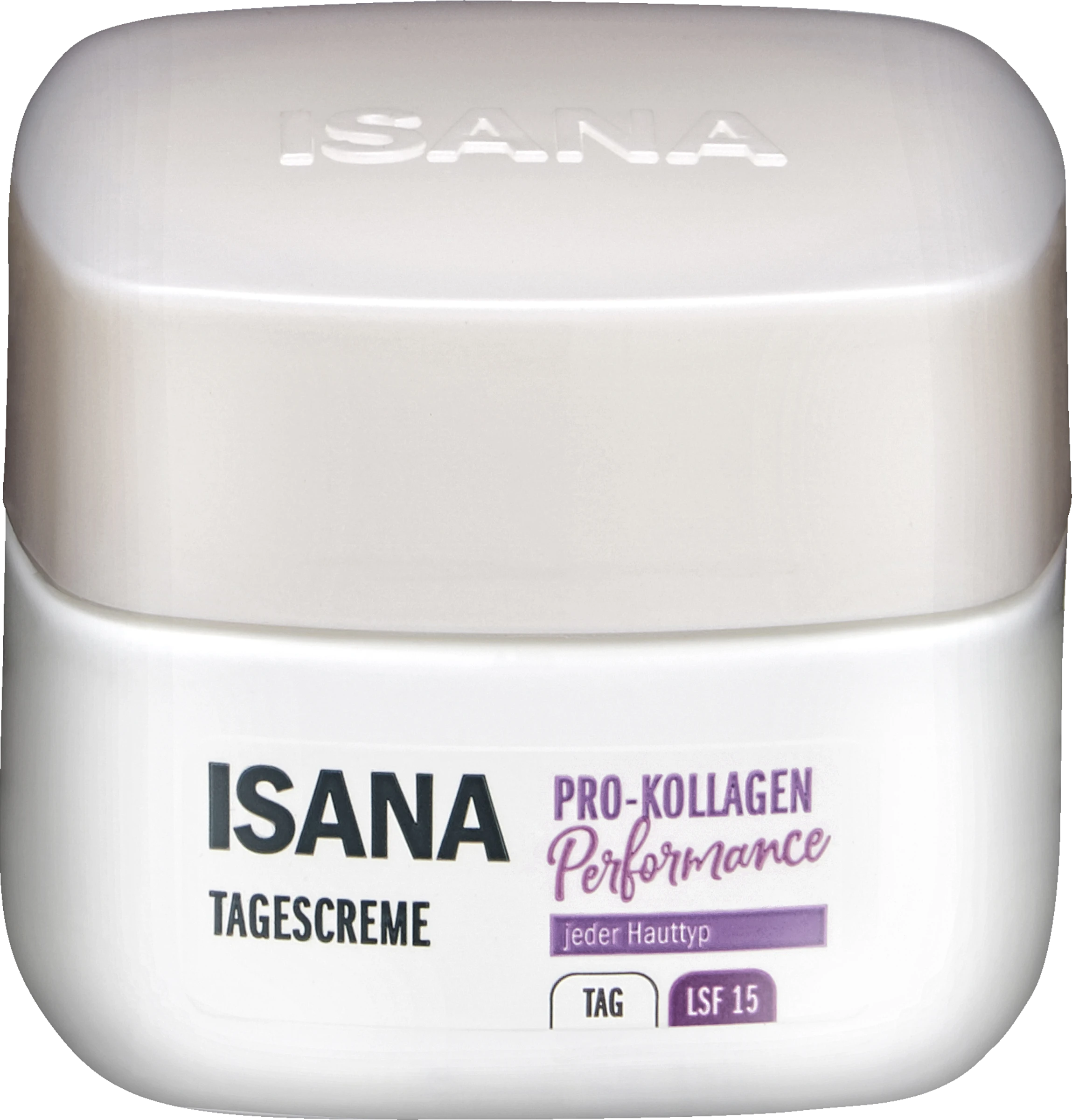 Die ISANA PRO-KOLLAGEN PERFORMANCE TAGESCREME mit dem Kollagen-Active-Booster sorgt für straffere Gesichtspartien. Sie wirkt den Zeichen der Hautalterung entgegen, verleiht der Haut Ausstrahlungskraft und Elastizität. WIRKUNG: Der pflanzliche Kollagen-Active-Booster stimuliert die Produktion hauteigener Kollagenfasern und verbessert so den Kollagenhaushalt. Die Haut wird bei regelmäßiger Anwendung straffer und die Formulierung sorgt so für mehr Elastizität und Festigkeit der Haut.ERGEBNIS: Die ISANA Pro-Kollagen Performance Tagescreme wirkt aktiv gegen lichtbedingte Hautalterung. Die Hautstruktur wird nachweislich gefestigt und Falten reduziert. Für eine straffere, geschmeidigere Haut.Verbesserung der Hautfestigkeit & Elastizität. Reduzierung der Faltentiefe bei 95% der Testerinnen**prozentualer Anteil der Personen in einer objektiven Messung nach 4 Wochen.HAUTVERTRÄGLICHKEIT: dermatologisch bestätigt.Diese Rezeptur ist zu 100% ohne Mikroplastik
