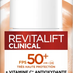 Das Revitalift Clinical Vitamin C Tägliches Anti-UV Fluid LSF 50+ mit antioxidativem Vitamin C jeden Morgen gleichmäßig auf das Gesicht auftragen. Vor dem Gebrauch gut schütteln.