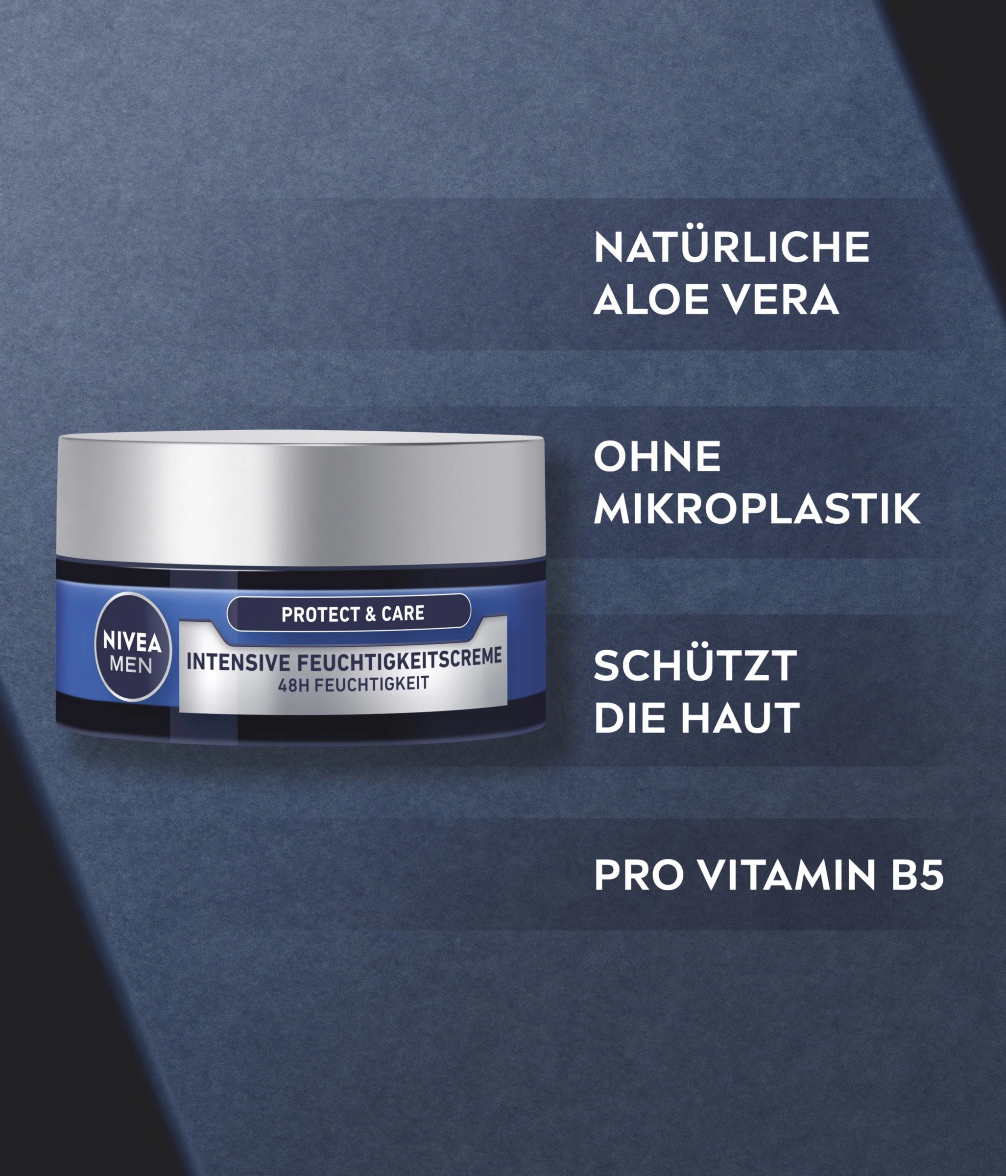 Regelmäßiges Rasieren, Wind, Regen und schwankende Temperaturen können eine Herausforderung für die Haut sein. Daher braucht sie Schutz und Pflege. Die reichhaltige Feuchtigkeitscreme mit Aloe Vera und ProVitamin B5 pflegt die Haut intensiv und schützt sie vor dem Austrocknen.