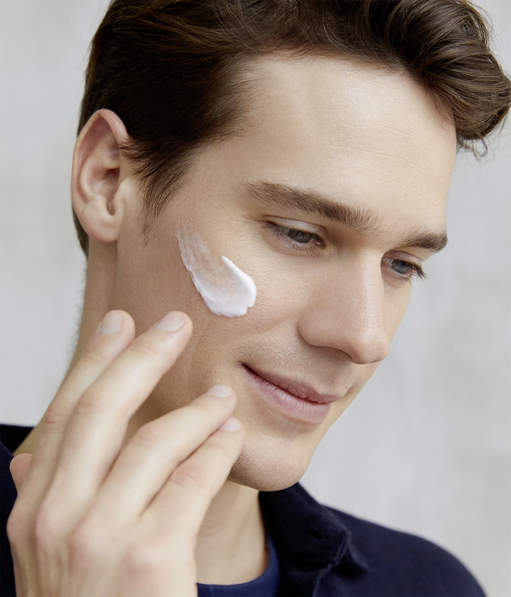Feuchtigkeitscreme für Männer morgens und abends großzügig auf die Haut auftragen. Direkten Augenkontakt vermeiden.