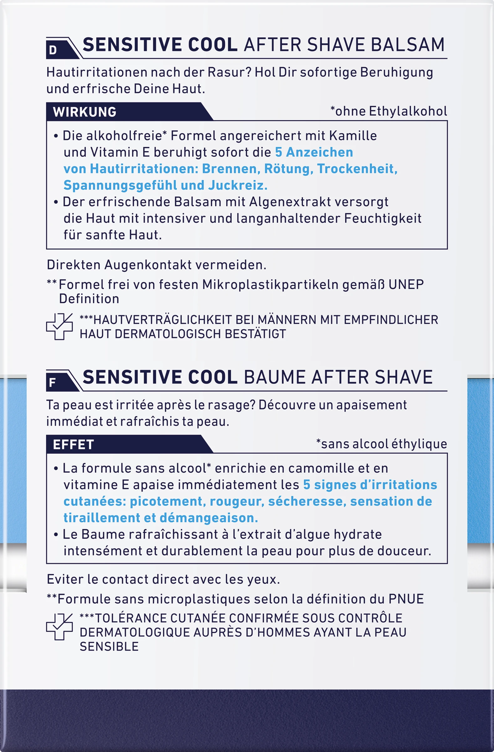 Beruhige deine Haut. Der Balsam wirkt mit seiner Formel mit Kamille- und Algenextrakten zweifach. Mindert Hautirritationen wie Rötungen und Reizungen und pflegt die Haut gleichzeitig mit einem kühlenden Frische-Kick. Die schnell einziehende Konsistenz beugt Trockenheit vor und erhöht die Widerstandsfähigkeit der Haut. Für eine vitale Ausstrahlung: Sensitive Cool After Shave Balsam.