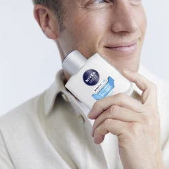 After Shave Balsam nach der Rasur großzügig auf Gesicht, Kinnund Hals auftragen. Augenkontakt vermeiden.