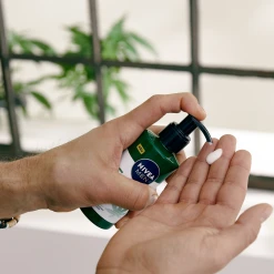 Der NIVEA MEN SENSITIVE PRO Gesichts- und Bartbalsam lindert effektiv die Anzeichen von Hautstress, wie Trockenheit, Hautirritationen oder Müdigkeit. Die leichte und feuchtigkeitsspendende Formel mit 100% pflanzlichem Hanfsamen-Öl ist ideal für die Bartflege. Das Vitamin E beruhigt die Haut sofort. Dieser Gesichts- und Bartbalsam von Nivea zieht schnell ein ohne zu fetten – für eine gesund aussehende Haut. Aus Liebe zur Haut und Umwelt ist die Flasche aus 97% recyceltem Material (ohne Pumpe & Etikett). Die Formel enthält kein Mikroplastik und 95% der Inhaltstoffe haben einen natürlichen Ursprung. Für eine schonende, natürliche Bartpflege! HAUTVERTRÄGLICHKEIT BEI MÄNNERN MIT EMPFINDLICHER HAUT DERMATOLOGISCH BESTÄTIGT.