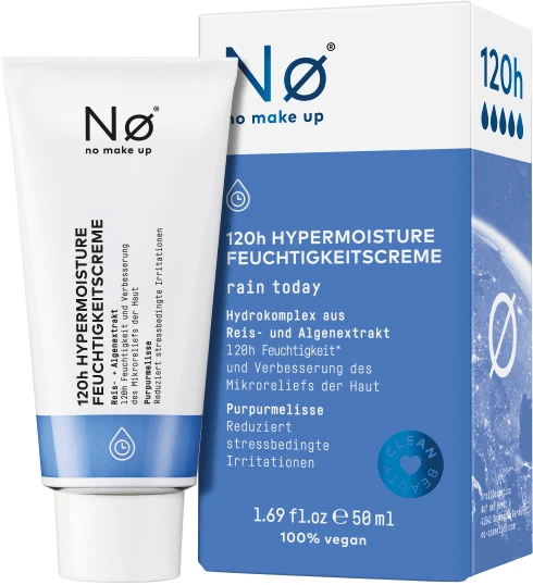 Ø rain today 120h HyperMoisture™ Creme gibt Deiner Haut eine parfumfreie, besonders verträgliche, aber trotzdem hochwirksame Pflege, die nach Blue Beauty Prinzipien (Ocean Safety + UpCycling + ReCycling) entwickelt wurde. Dabei werden in der mikroplastikfreien Formel möglichst Rohstoffe verwendet, die sonst weggeworfen würden (z. B. Reisbruch) und die Verpackung wird danach optimiert, dass sie aus Recyclingprozessen stammt und/ oder leicht rezyklierbar ist. Deshalb besteht die Tube der ø rain today Creme aus 100% recyceltem Aluminium aus der „gelben Tonne“, die nach Verwendung verlustfrei wiederverwertet werden kann. Dadurch wird zusätzlich sichergestellt, dass der Wasserkreislauf des Planeten durch das Produkt oder seine Verpackung nicht beeinträchtigt wird, da die Verpackung fast vollständig plastikfrei ist. Der PhytoMoisture-Komplex von ø rain today und tonight baut durch eine besondere Kombination aus Amylopectin aus ungenutztem Reisbruch und Calciumcarbonat aus einer nachhaltig angebauten atlantischen Rotalge in 28 Tagen ein 120h-Feuchtigkeitsdepot in der Haut auf.