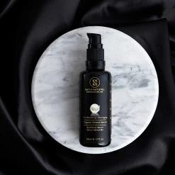 Gib 1-3 Pumpstöße des Serums auf die Fingerspitzen und verteile es sanft über das gereinigte Gesicht. Vermeide dabei, an der Haut zu ziehen oder zu reiben. Schließe die Pflegeroutine mit einer Feuchtigkeitscreme.