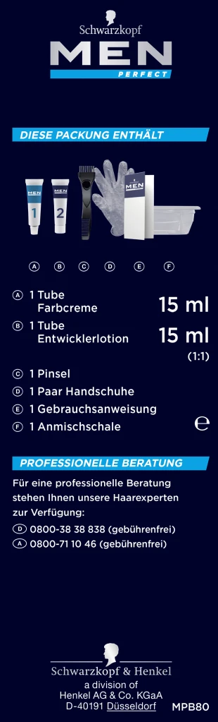 Das neue Schwarzkopf Men Perfect Bart: Unsere erste Coloration, speziell entwickelt für die anspruchsvolle Gesichtsbehaarung von Männern – für einen perfekt aussehenden Bart. Die spezielle Farbmixtur blendet graue Haare aus und sorgt für ein natürlich aussehendes Farbergebnis in nur 5 bis 10 Minuten. Eine diskrete, natürlich aussehende Haarfarbe für den Bart – SCHNELL UND EINFACH.