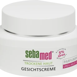 Die sebamed Trockene Haut Gesichtscreme Urea Akut 5% parfumfrei lindert spürbar Spannungsgefühl, Schuppung und Rauheit bei sehr trockener Haut.