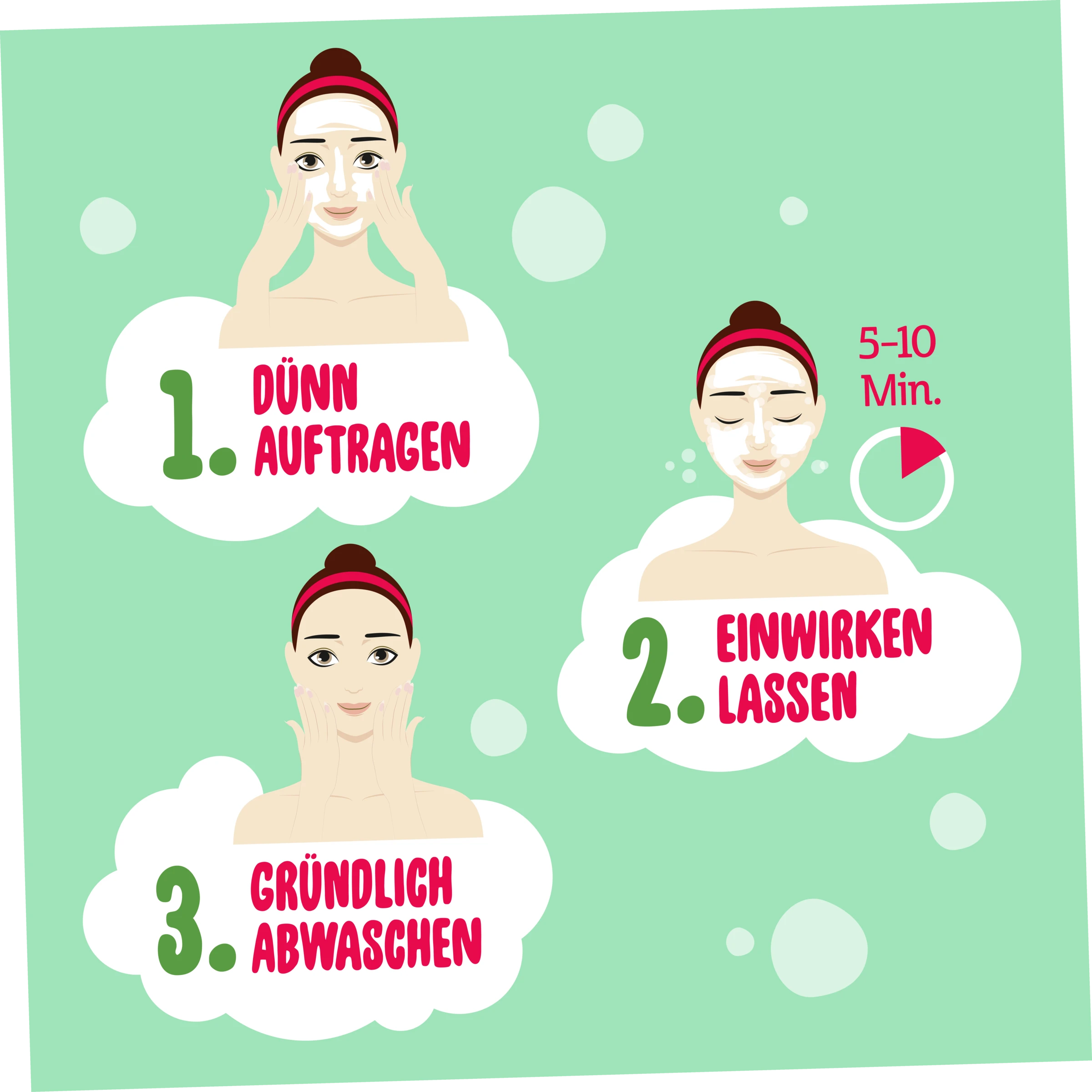 2. Abwarten, bis die Maske anfängt aufzuschäumen. Für 5-10 Minuten einwirken lassen.